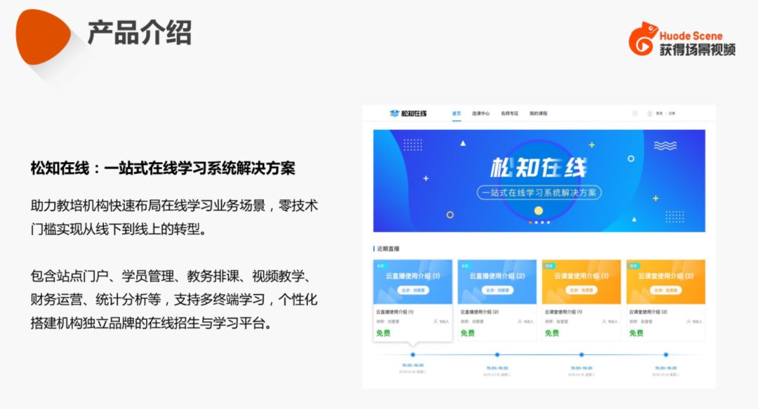 获得场景视频(原CC视频)在线学习系统(网校系统)与先进的视频云技术进一步融合,精准卡位在线教育,打造个性化教育平台,用多年的在线教育技术经验,分析客户需求,着眼为客户考虑,为教育机构量身定制专属网校平台,让更多教育者搭上在线教育浪潮,期待更多教育者的参与与体验,可通过400-993-9696应急电话联系我们。